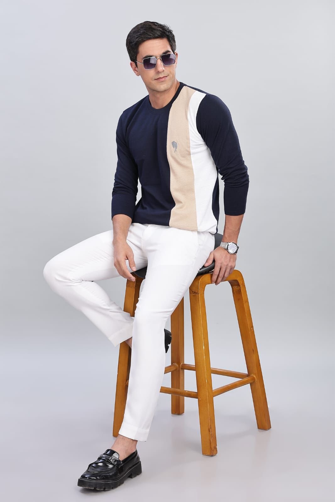 SKU: FS009 || Navy Trio || Full Sleeve Round Neck T-Shirt Category: