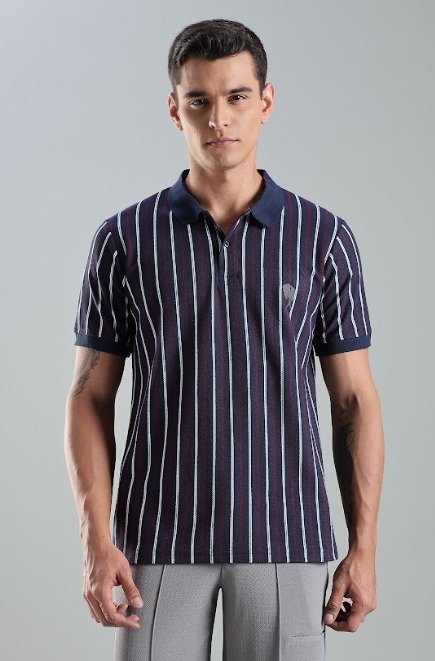 PR42 || Navy stripes || 100% Cotton Polo T-Shirt